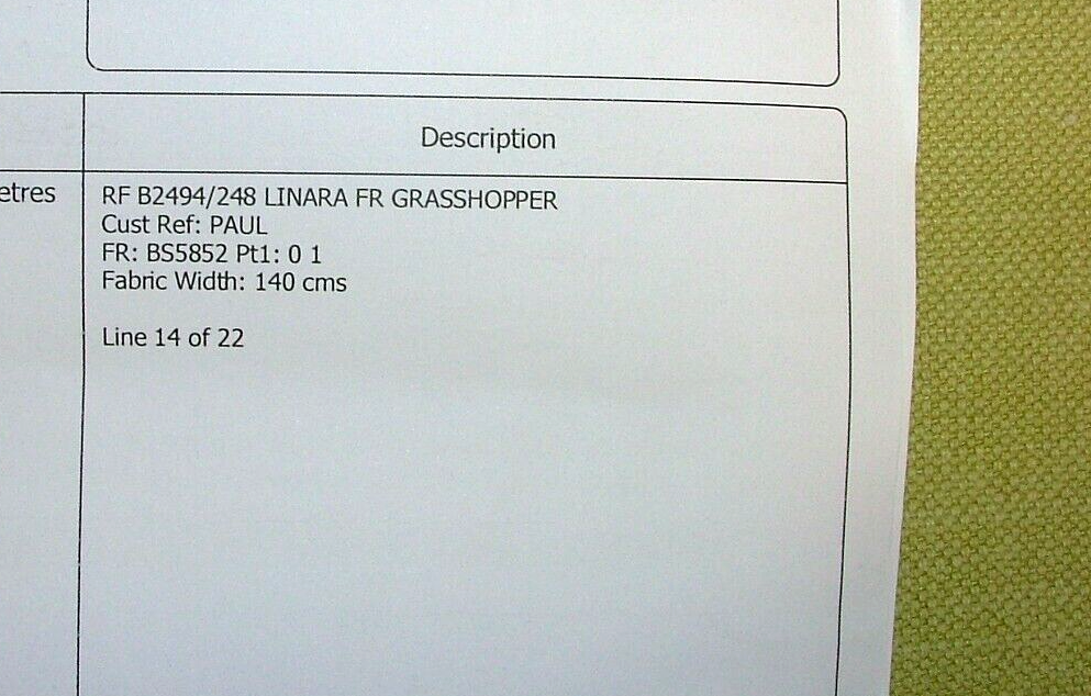 18 Metres Romo Linara Grasshopper Linen Union Fabric Upholstery Cushion Curtain