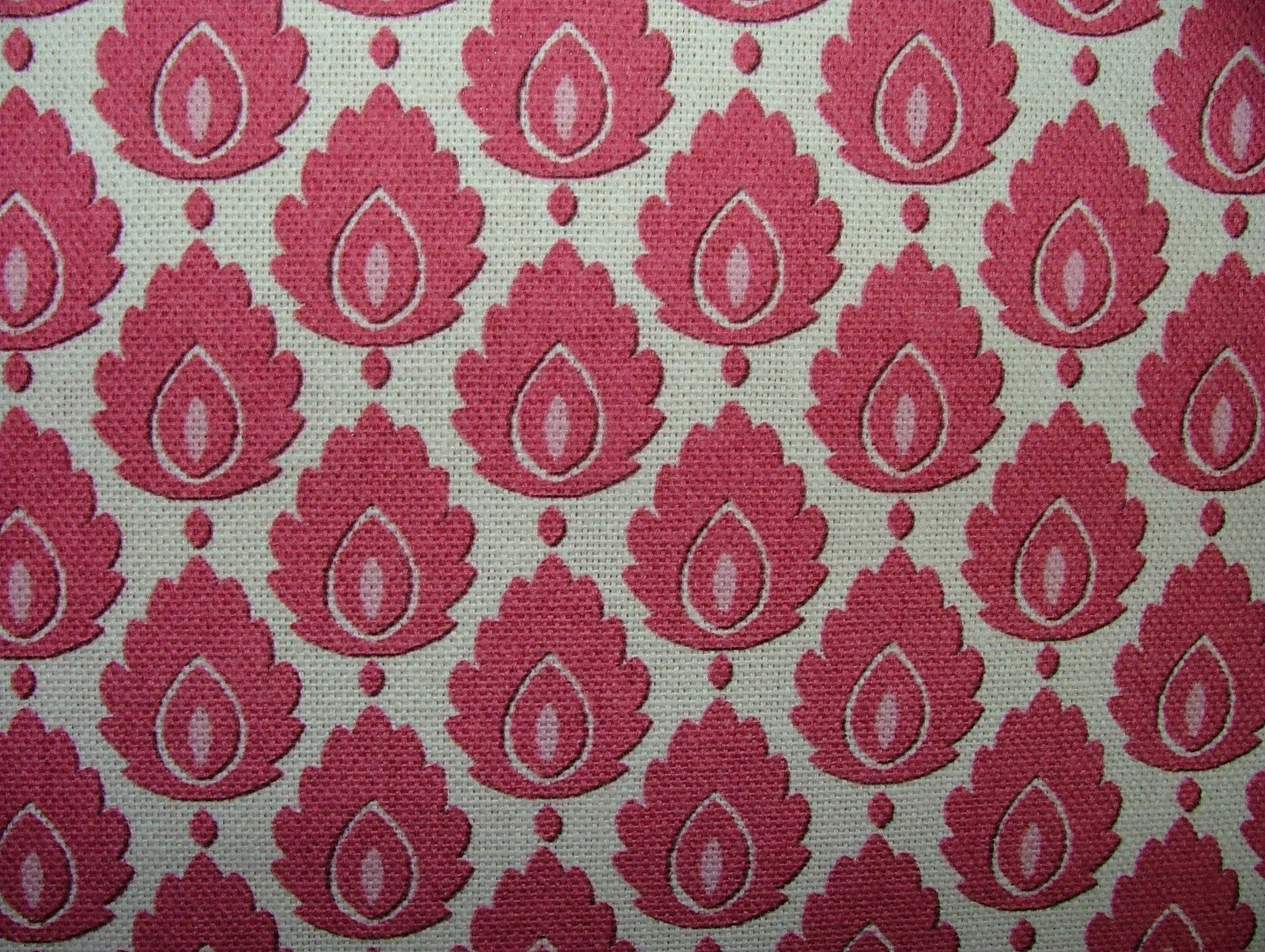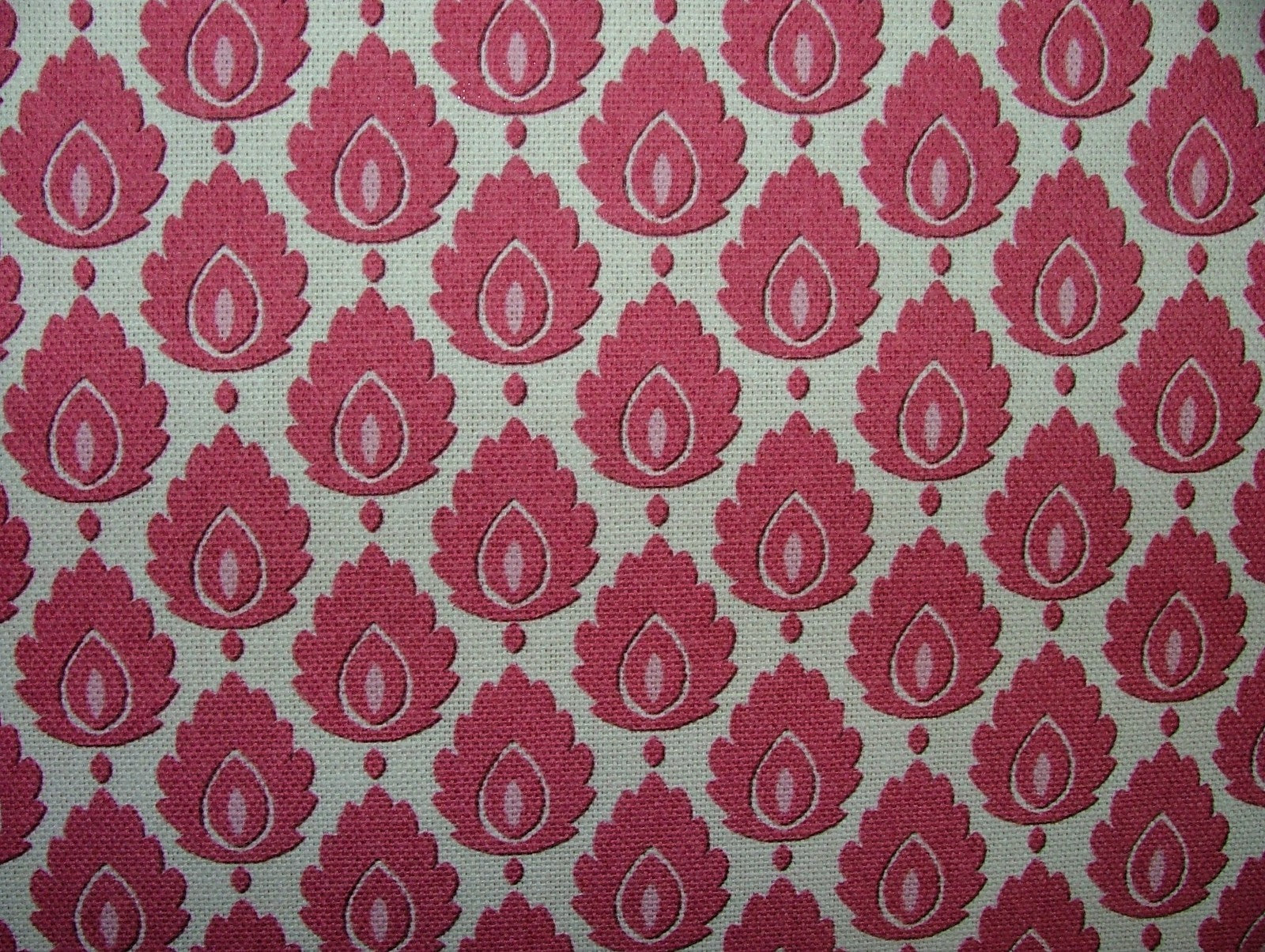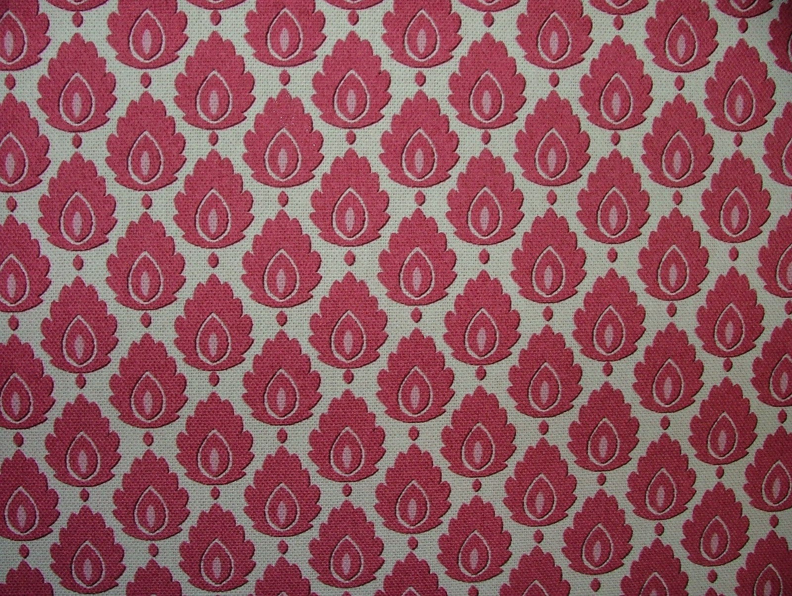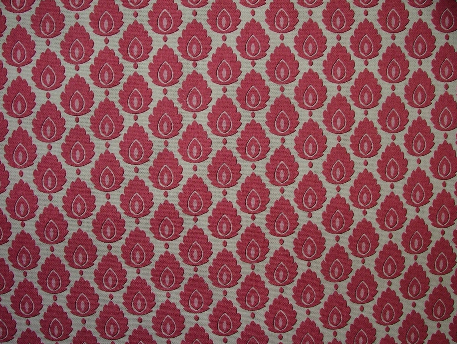 Cotton Curtain Upholstery Fabric Scandinavian Leaf Carmine Small Scale Floral