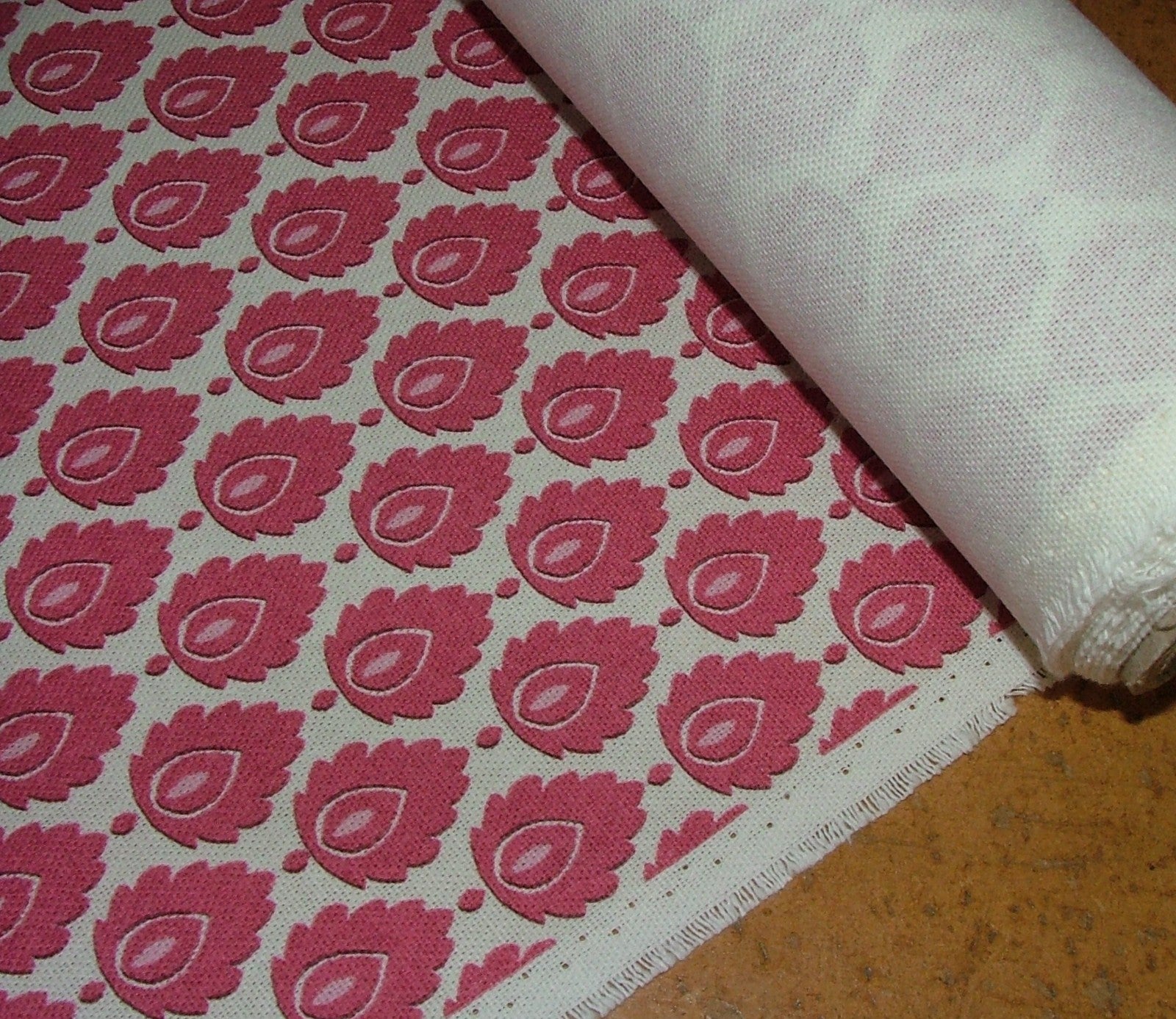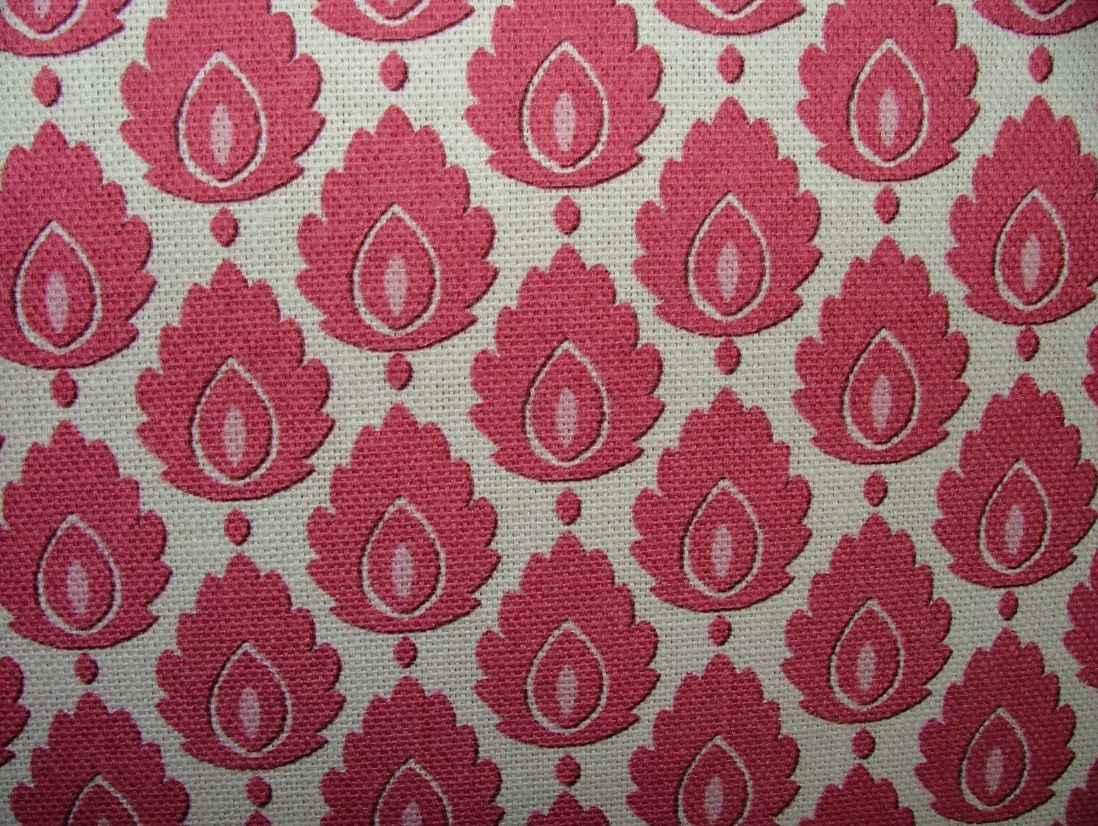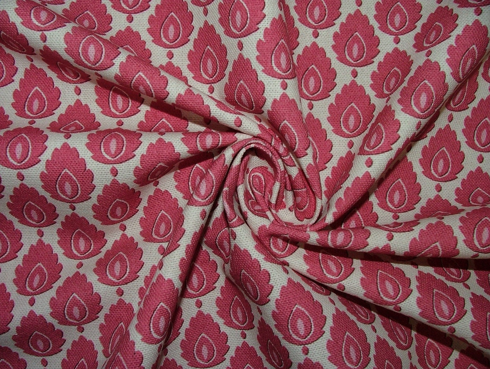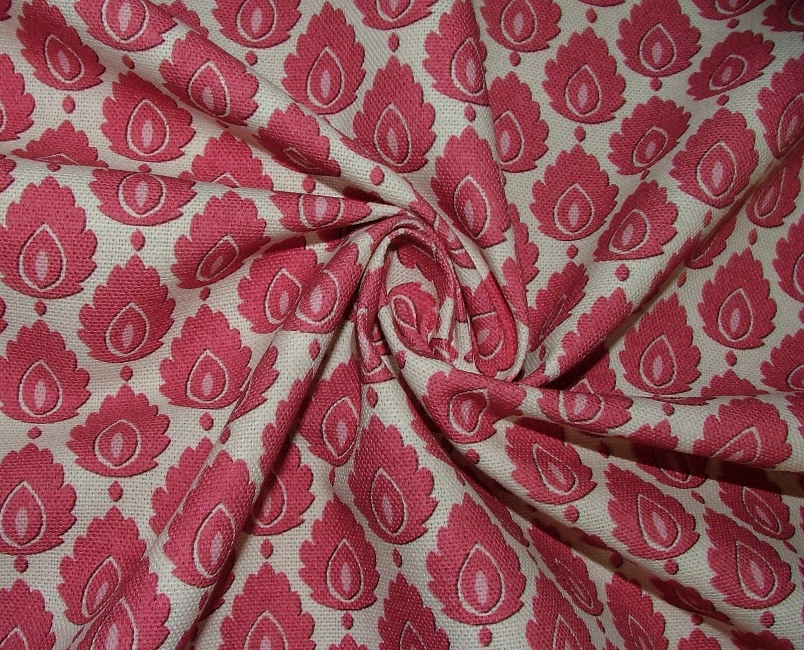 Cotton Curtain Upholstery Fabric Scandinavian Leaf Carmine Small Scale Floral