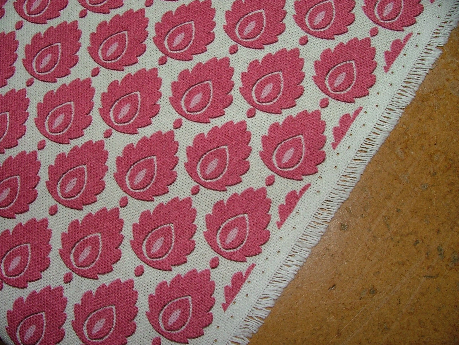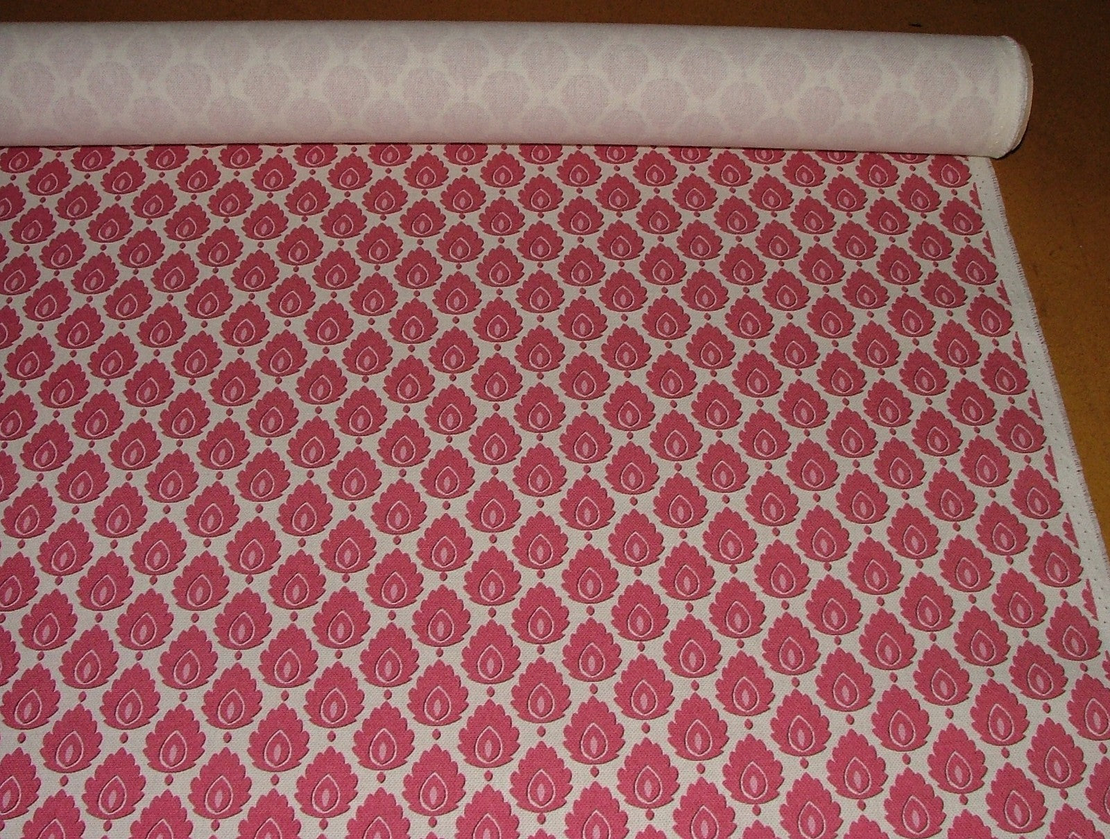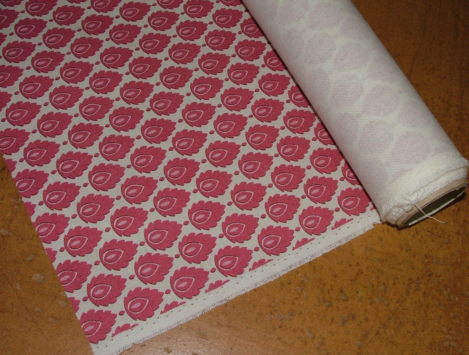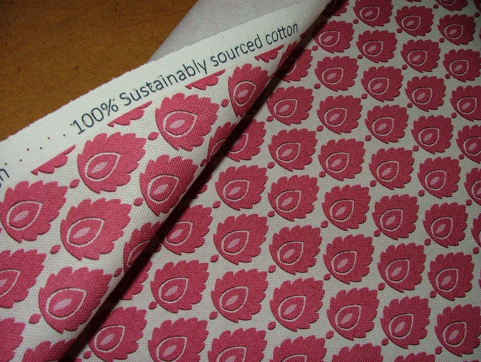 Cotton Curtain Upholstery Fabric Scandinavian Leaf Carmine Small Scale Floral