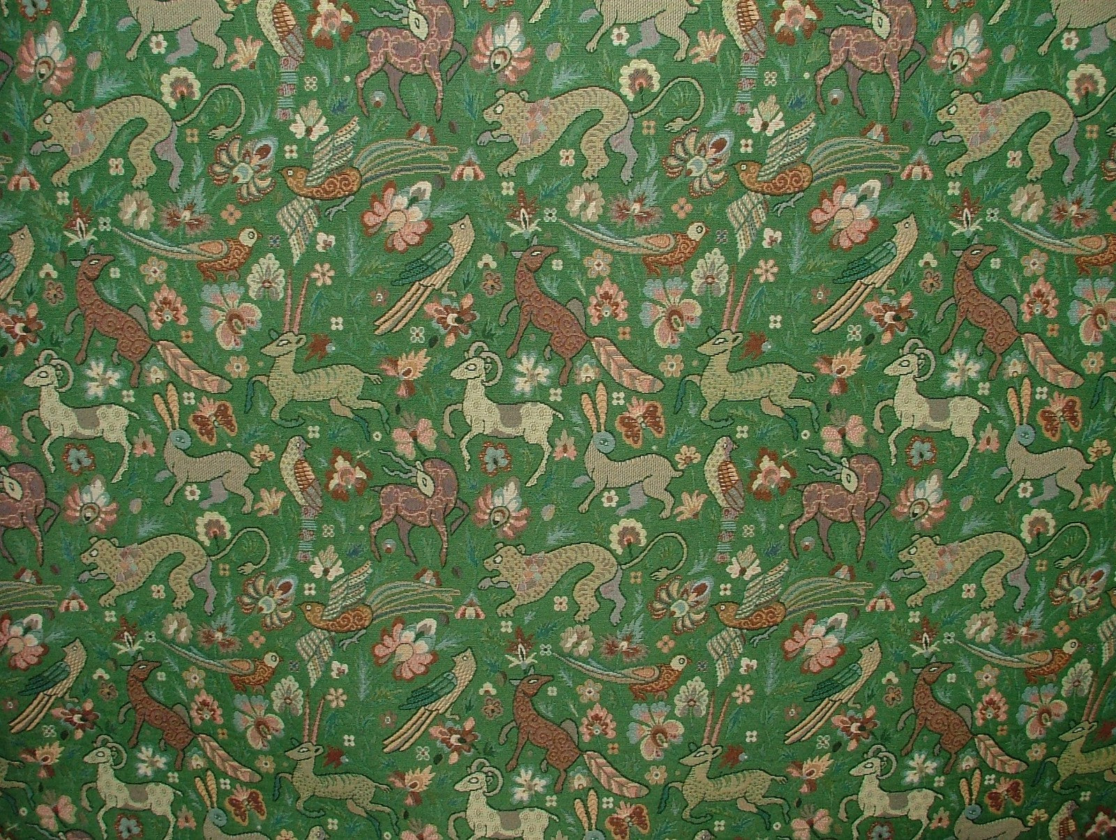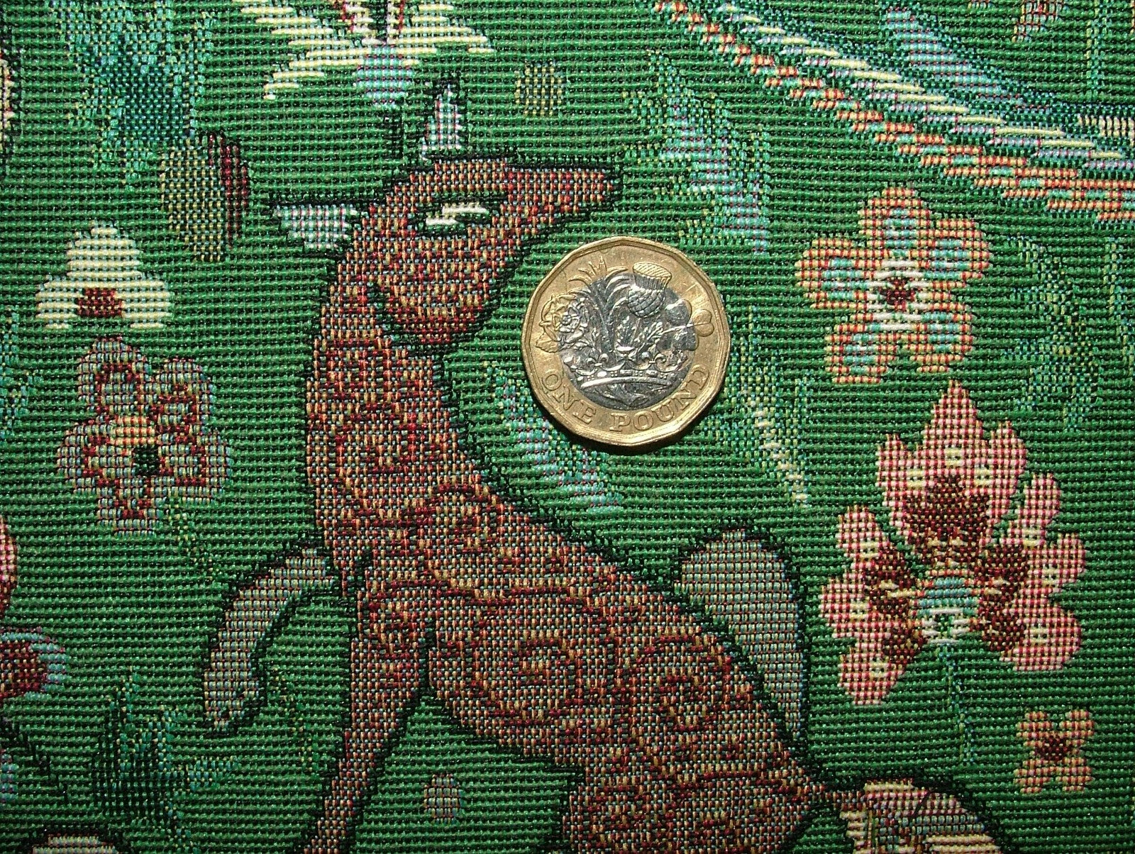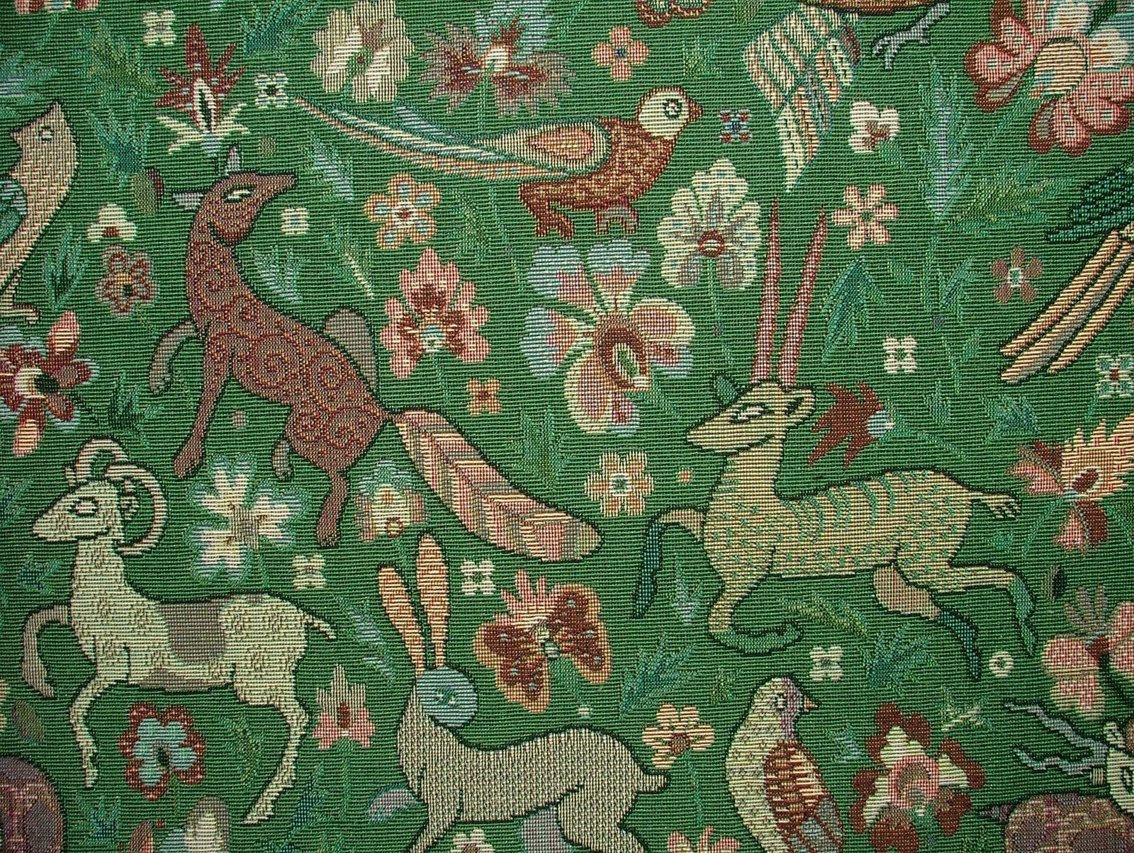 1.3 Metres Tudor Forest Tapestry Green Fabric Curtain Upholstery Cushions