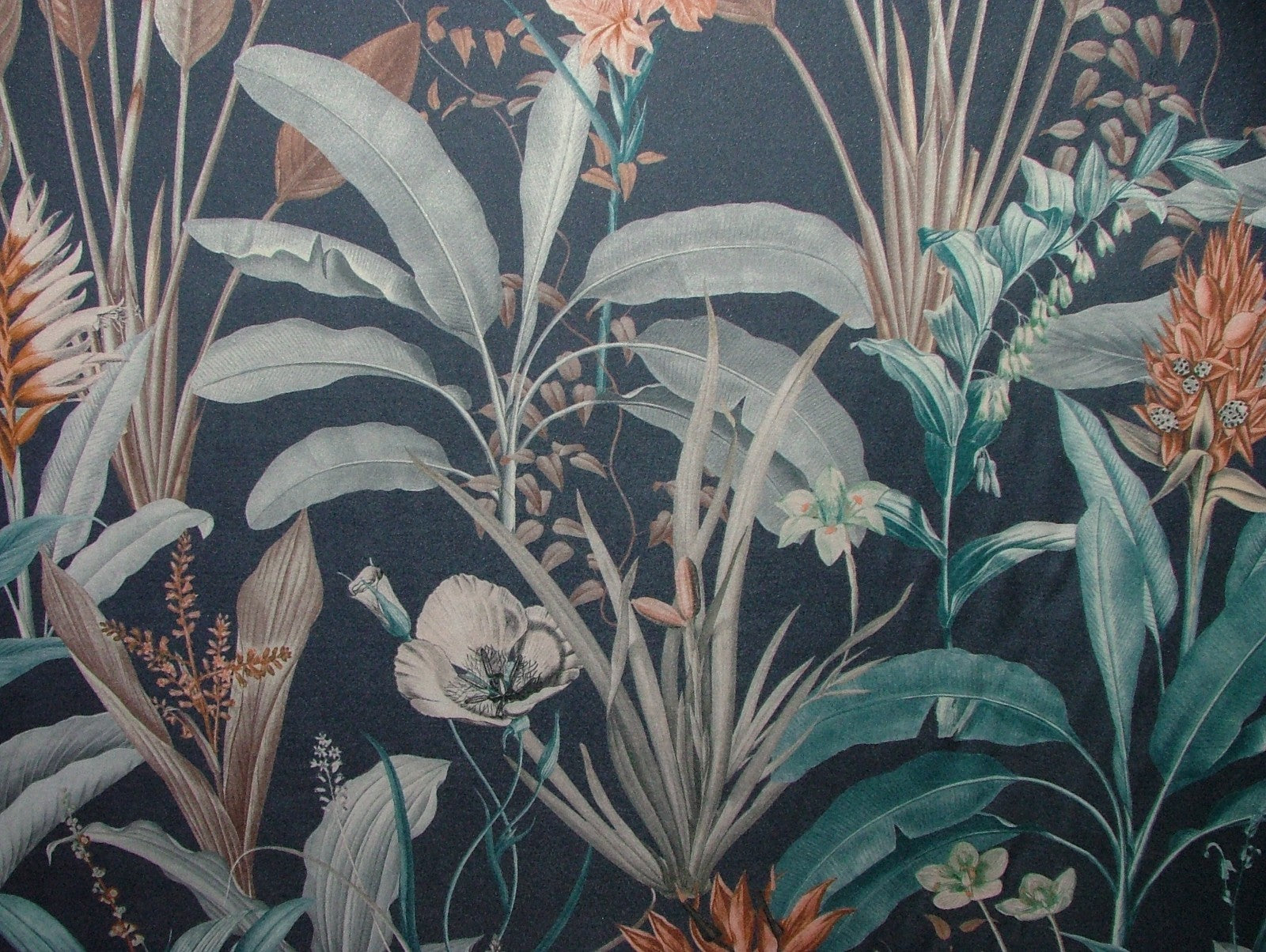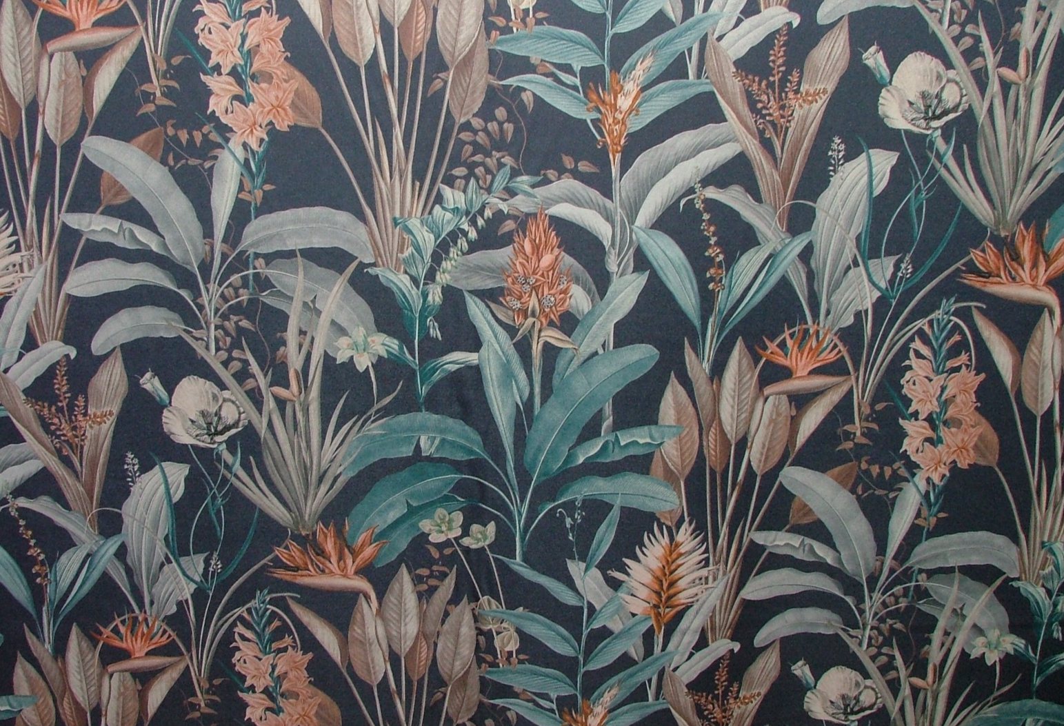 4.6 Metres Tropical Navy Blue Print Fabric Cushion Curtain Upholstery Use