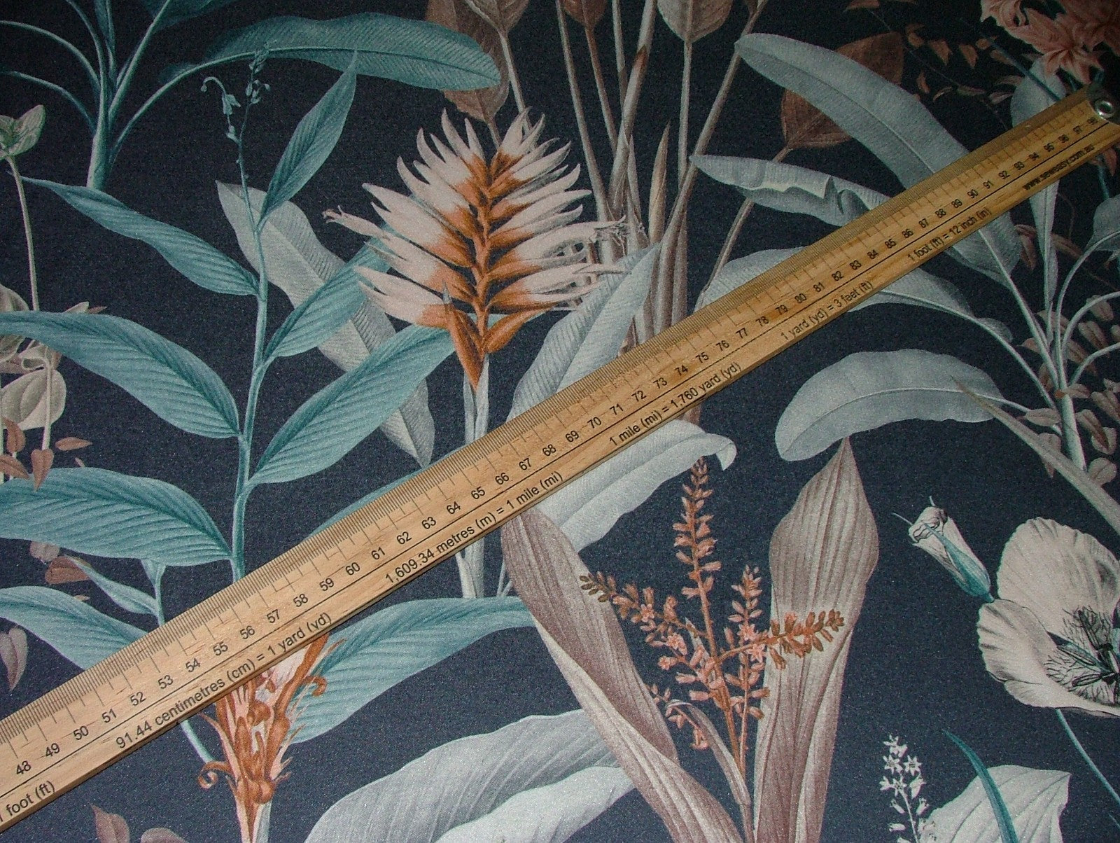 4.6 Metres Tropical Navy Blue Print Fabric Cushion Curtain Upholstery Use is backordered and will ship as soon as it is back in stock.