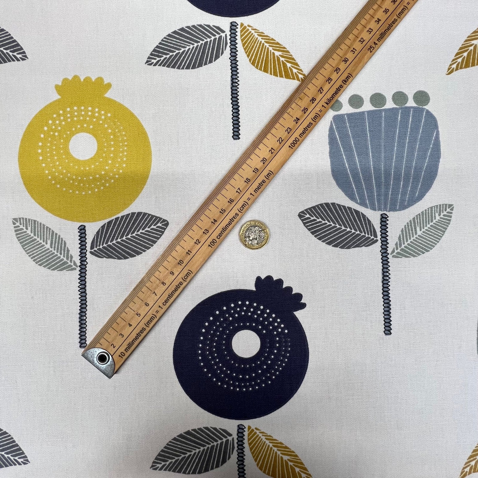 Brand - iLivFabric Type - Woven CottonDesign - Pomegranat Colour - Ochre Length - 6.7 MetresWidth - 137cms / 54"Pattern Repeat - 32cm