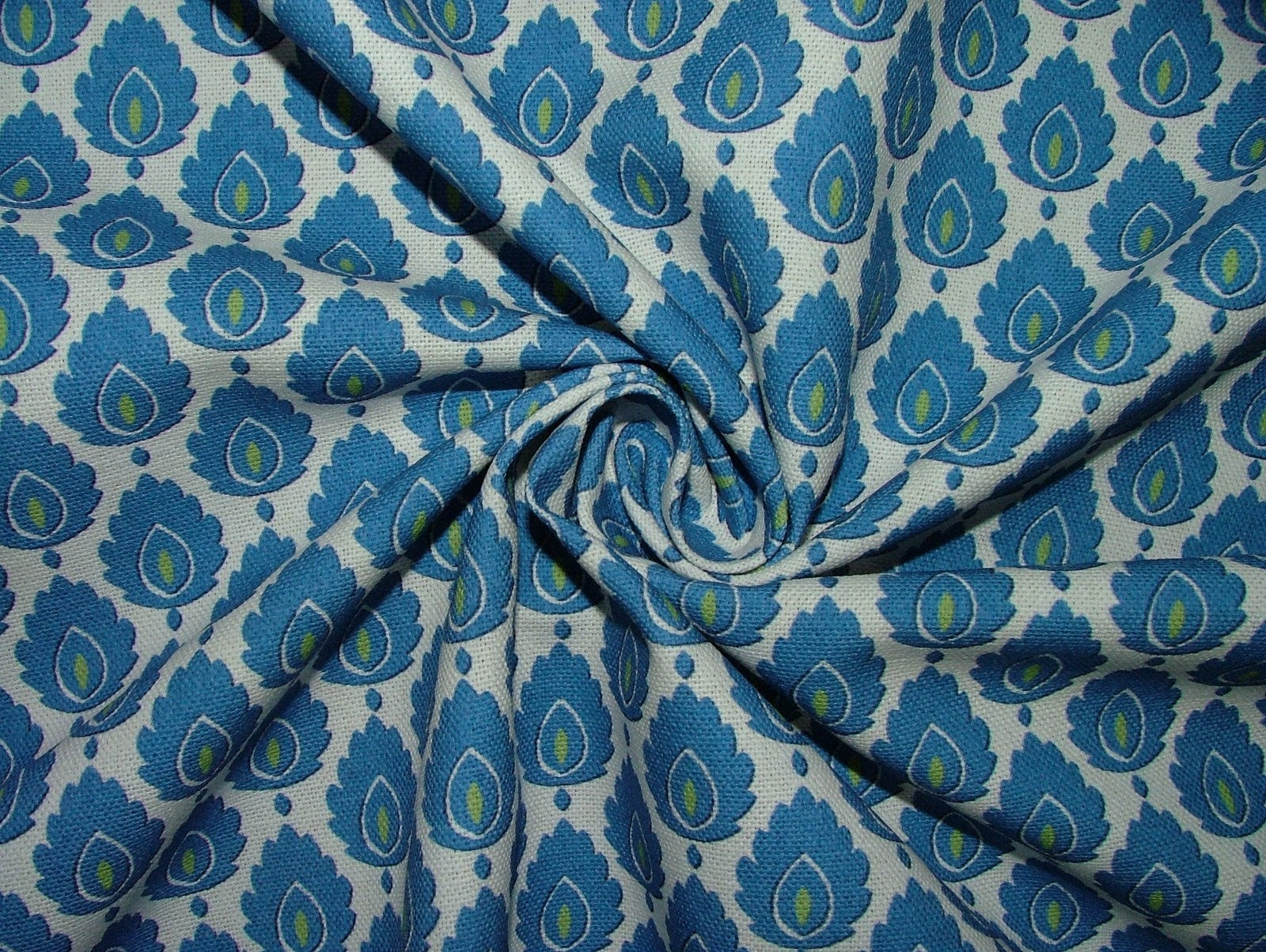 Cotton Curtain Upholstery Fabric Scandinavian Leaf Batik Blue Small Scale Floral - A4 Sized Sample is backordered and will ship as soon as it is back in stock.
