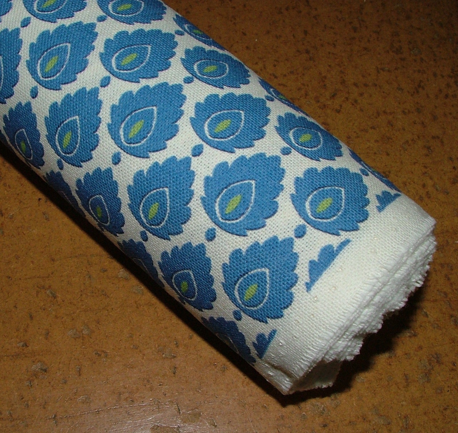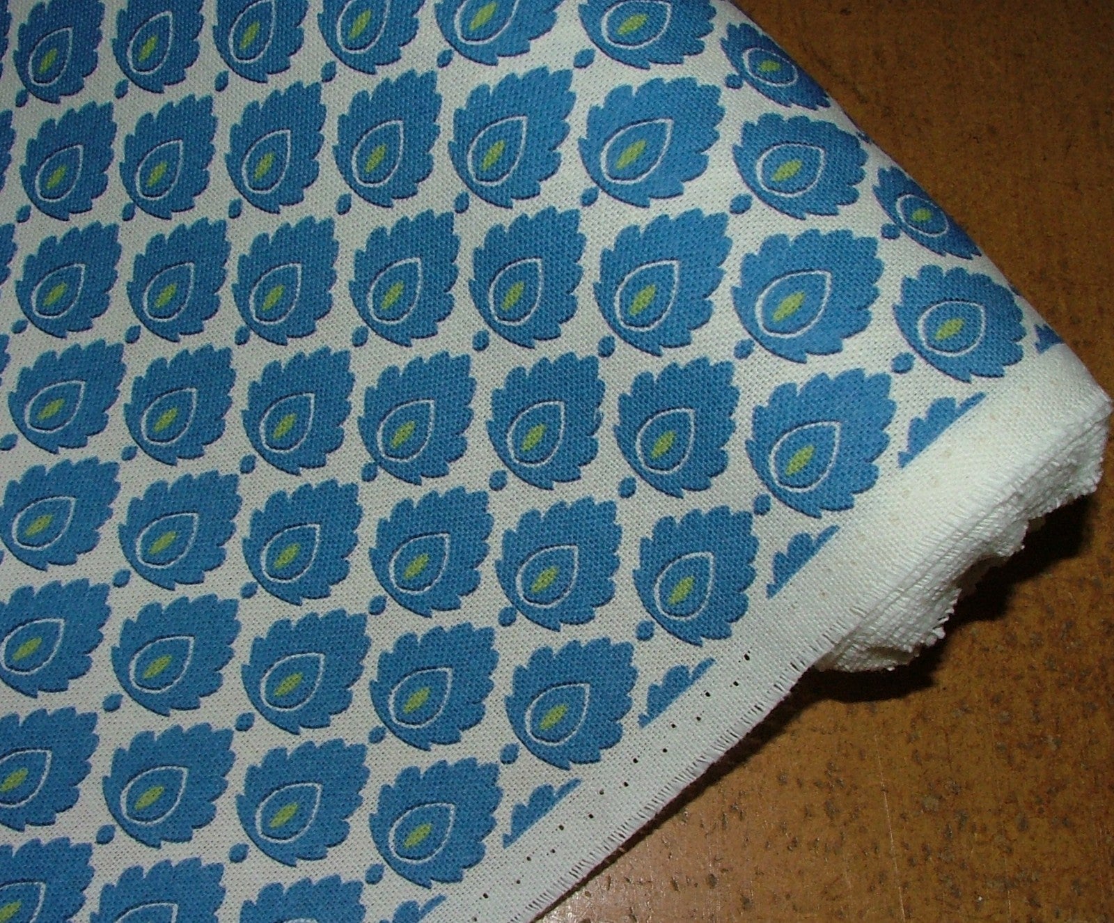 Cotton Curtain Upholstery Fabric Scandinavian Leaf Batik Blue Small Scale Floral