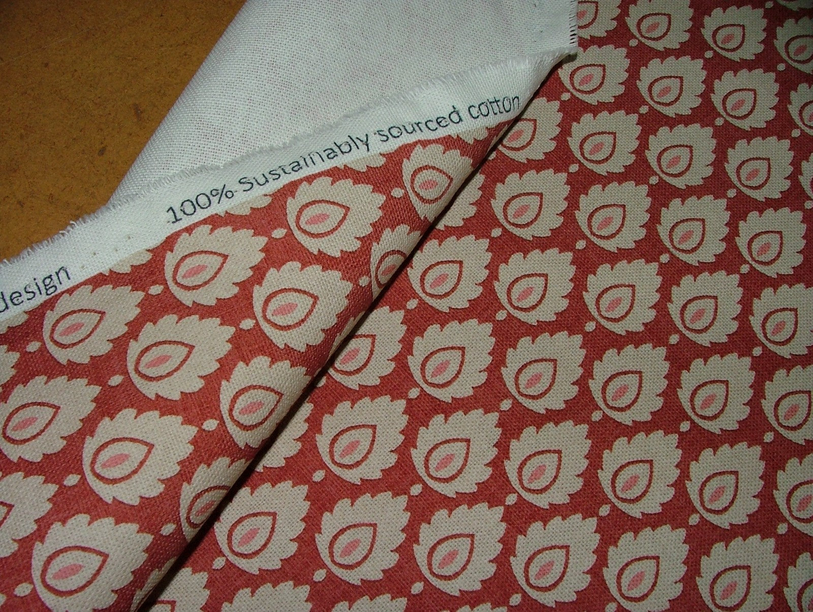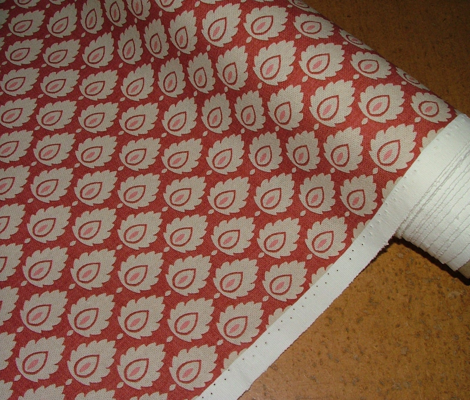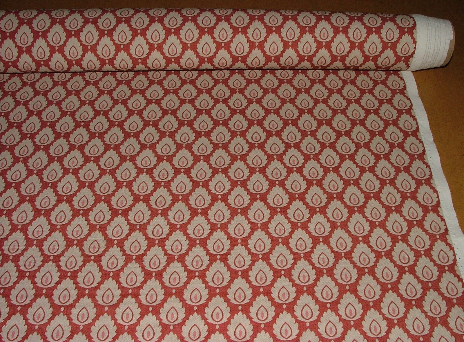 Cotton Curtain Upholstery Fabric Scandinavian Leaf Cinnabar Small Scale Floral