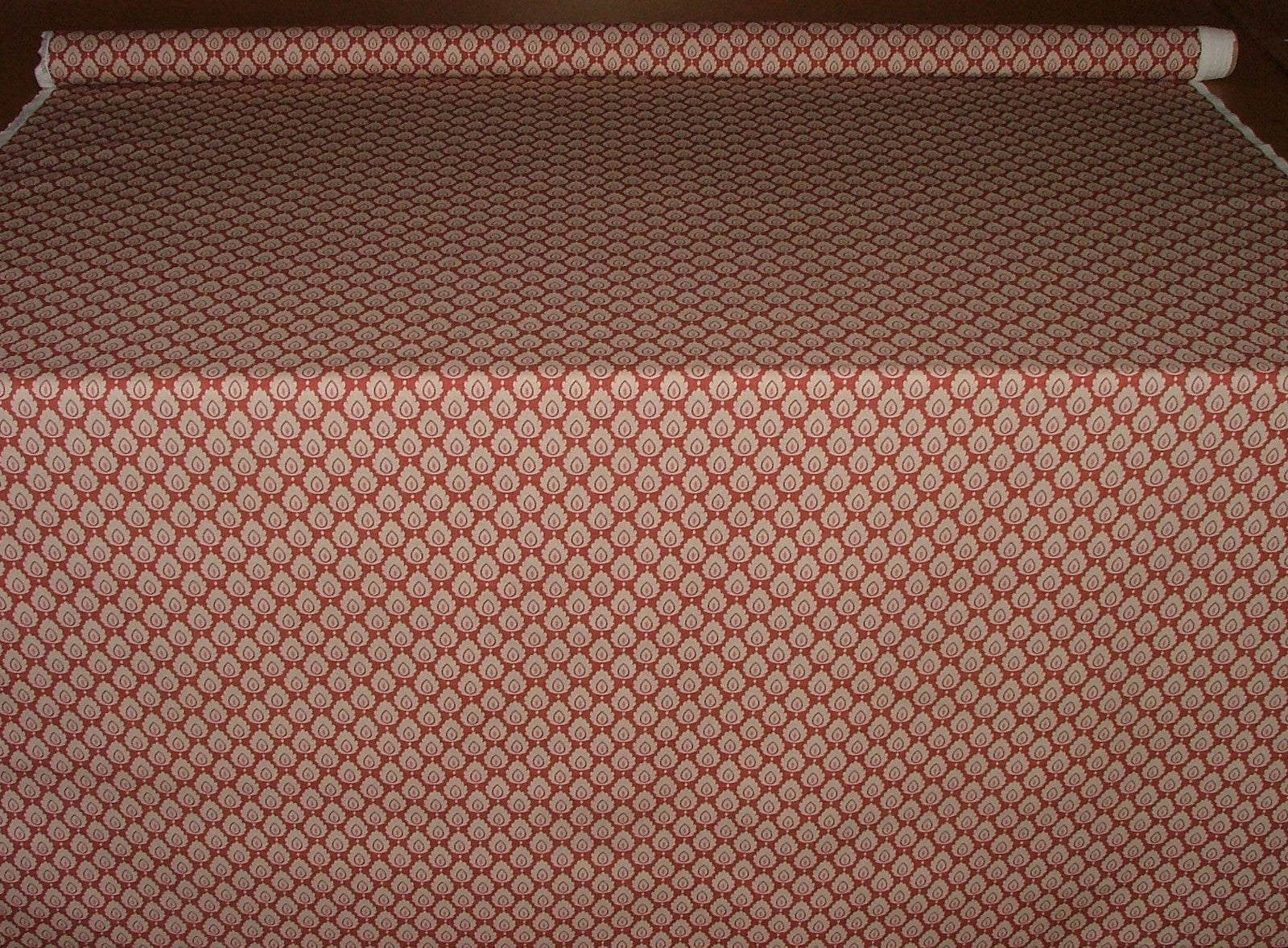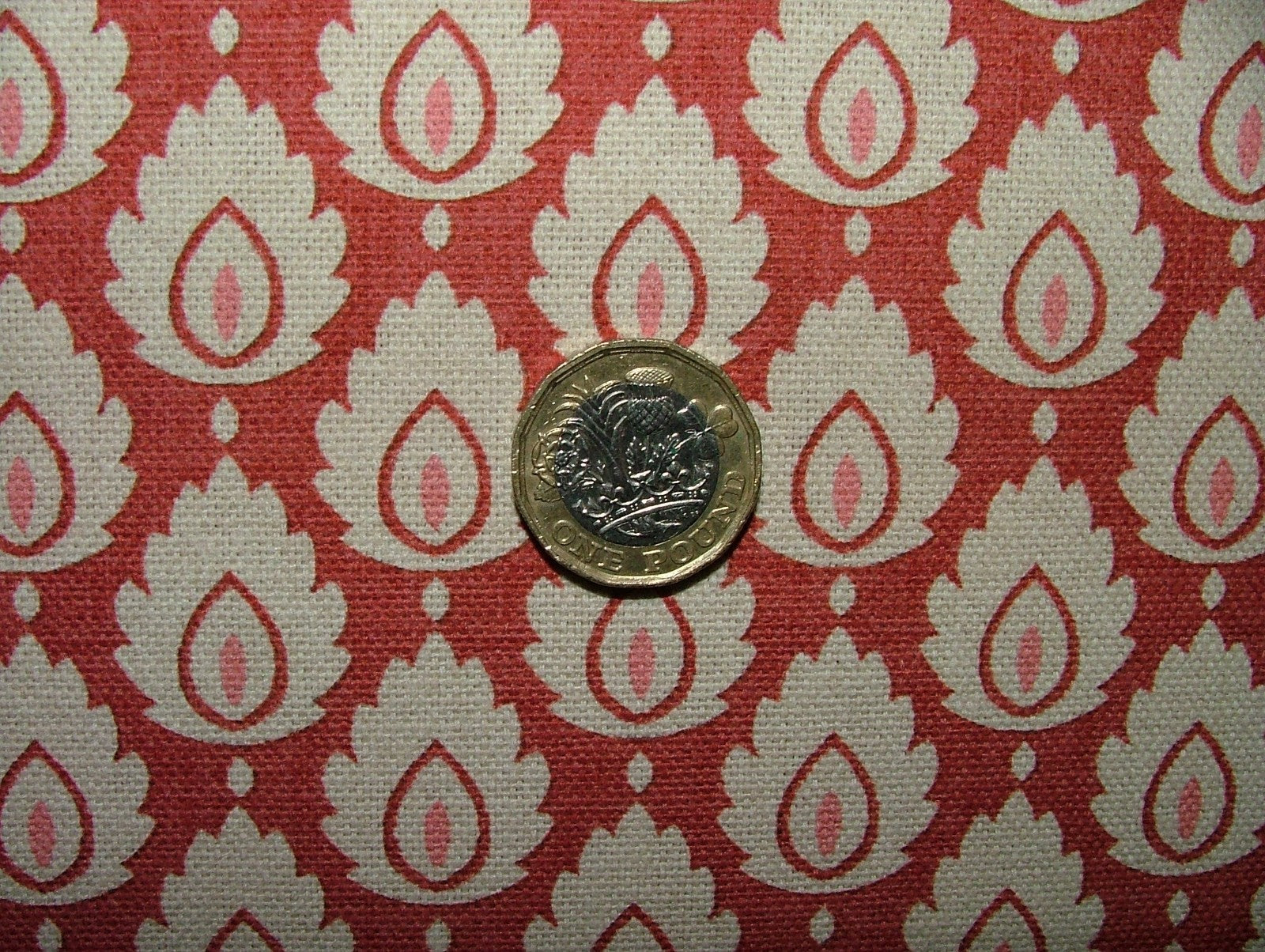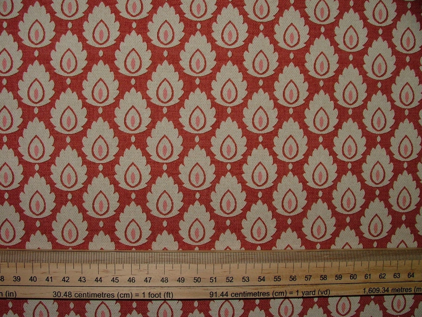Cotton Curtain Upholstery Fabric Scandinavian Leaf Cinnabar Small Scale Floral