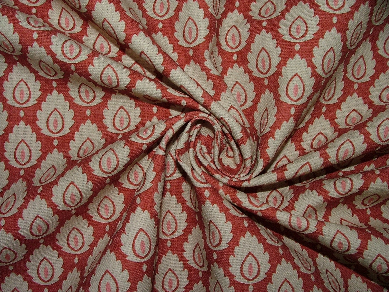 Cotton Curtain Upholstery Fabric Scandinavian Leaf Cinnabar Small Scale Floral - A4 Sized Sample is backordered and will ship as soon as it is back in stock.