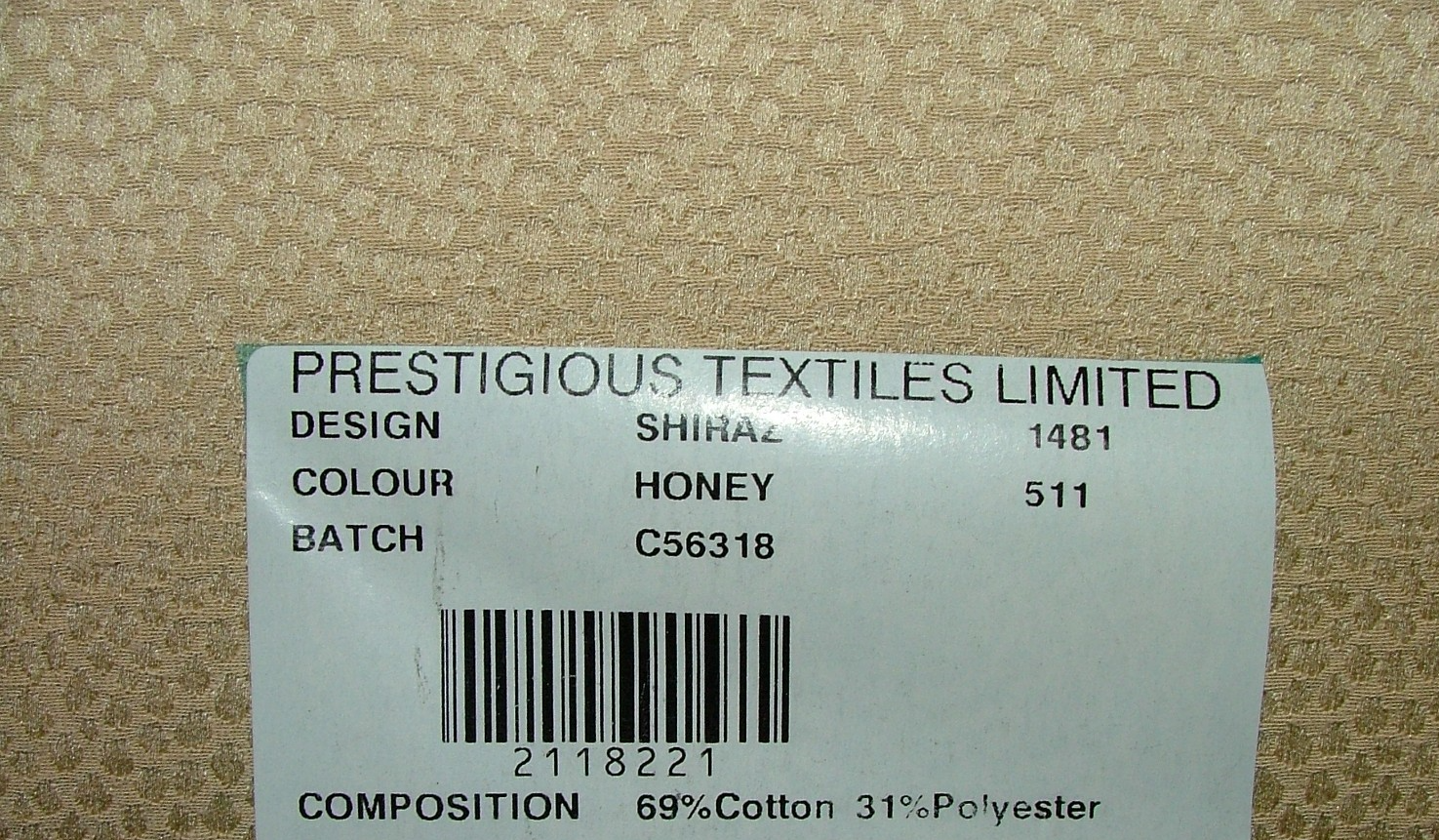 Brand - Prestigious Textiles Fabric Type - Jacquard Design - Shiraz Colour - Honey Length - 8.5 Metres Width - 137cms / 54" 69% Cotton 31% Polyester Flame Retardant - No Use - Curtains Careful Upholstery Cushions Soft Furnishings Etc Very High Quality Fabric Our Buy It Now Price Is For The Full 8.5 Metre Length UK Postage Is Free Of Charge