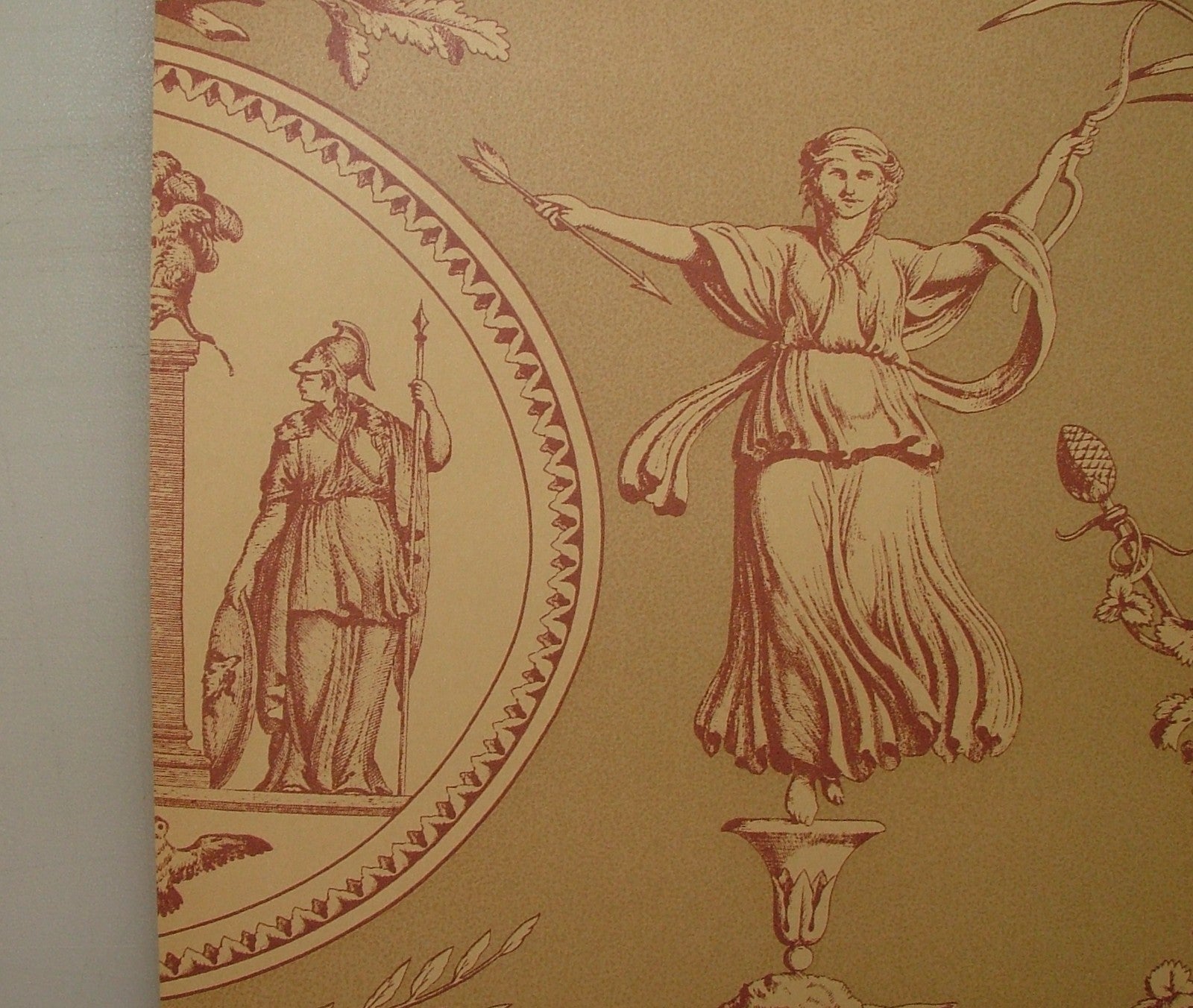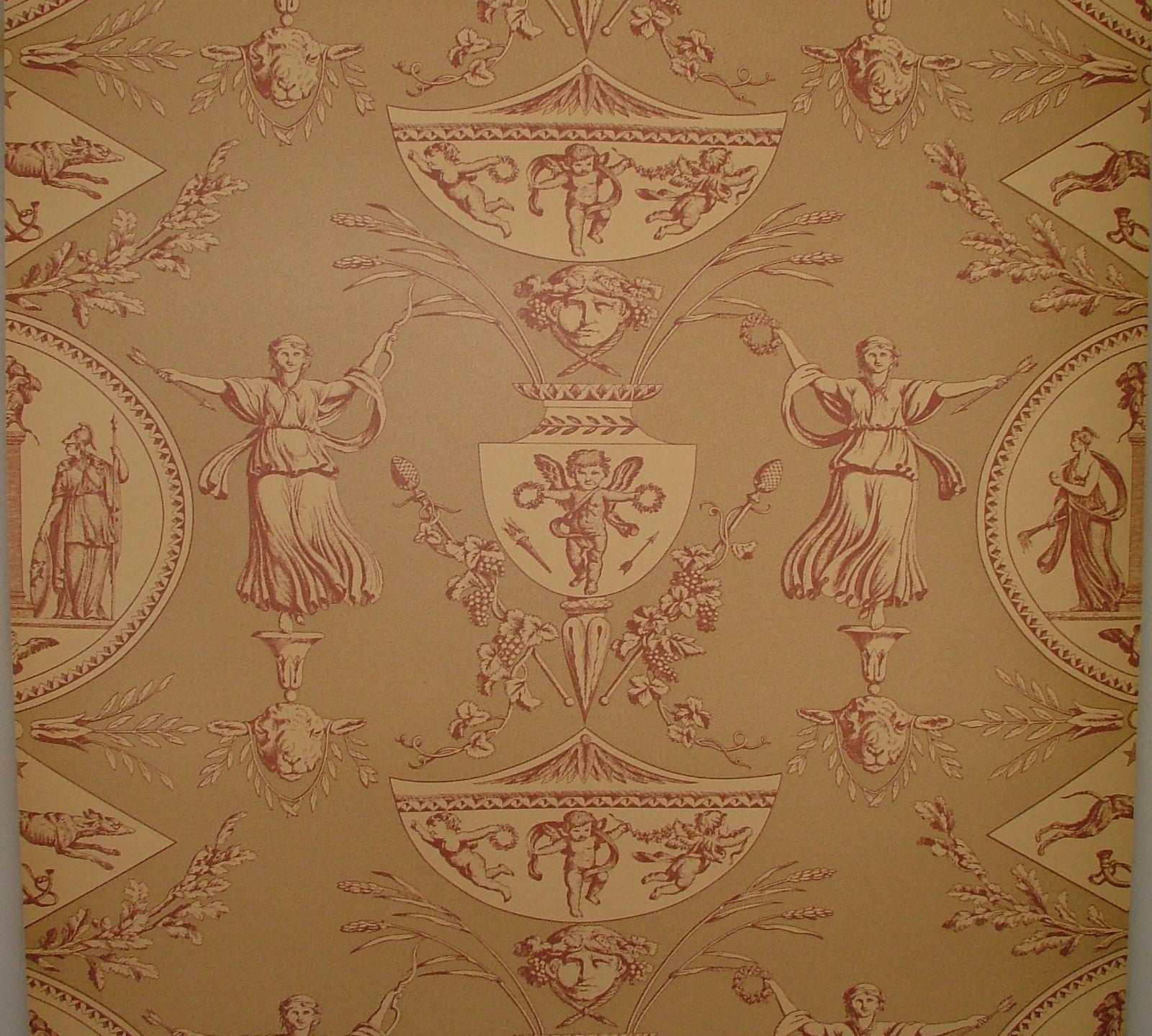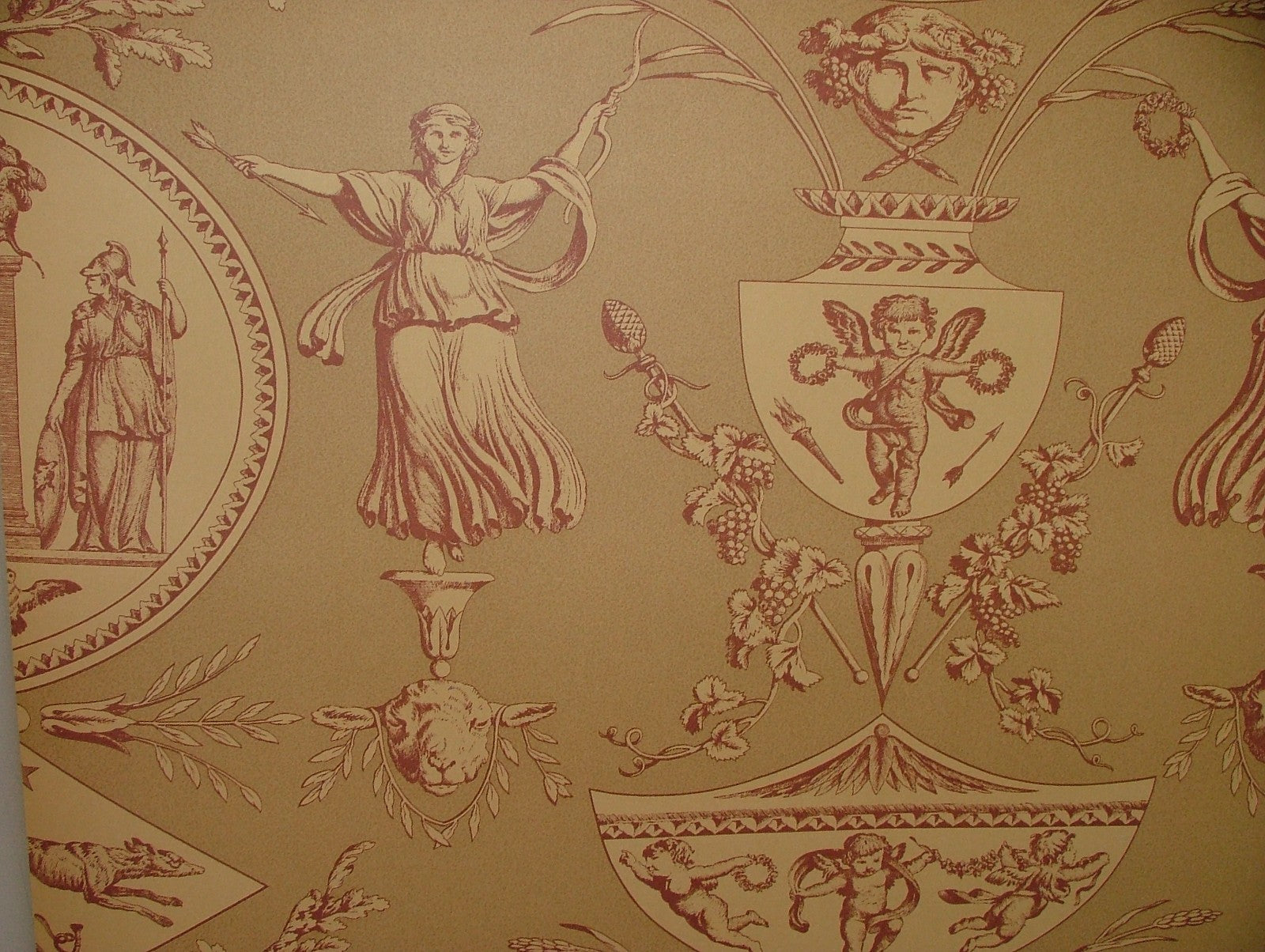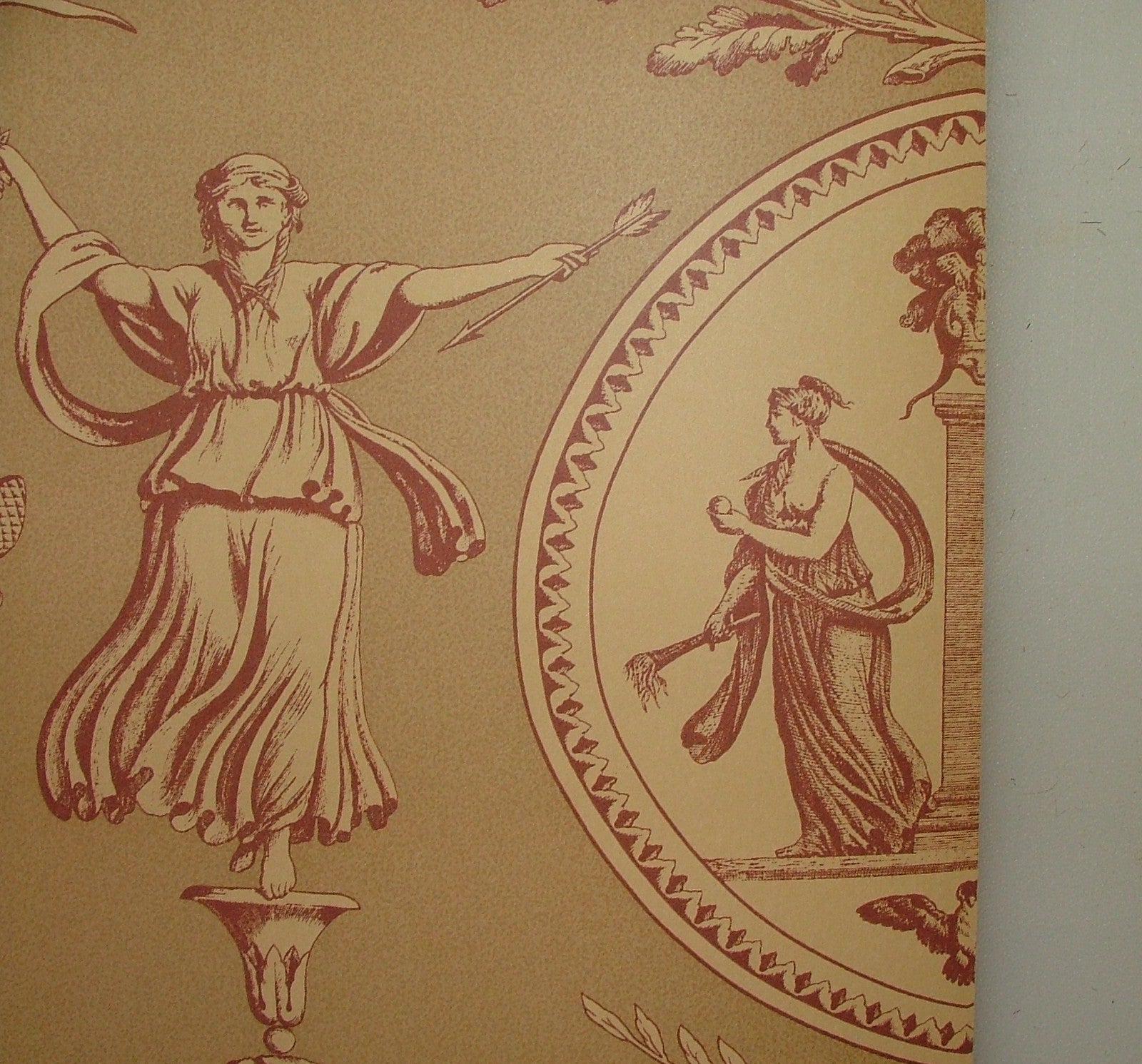 Vintage Aphrodite Toile Wallpaper Marvic Textiles Red - Sold BY THE ROLL