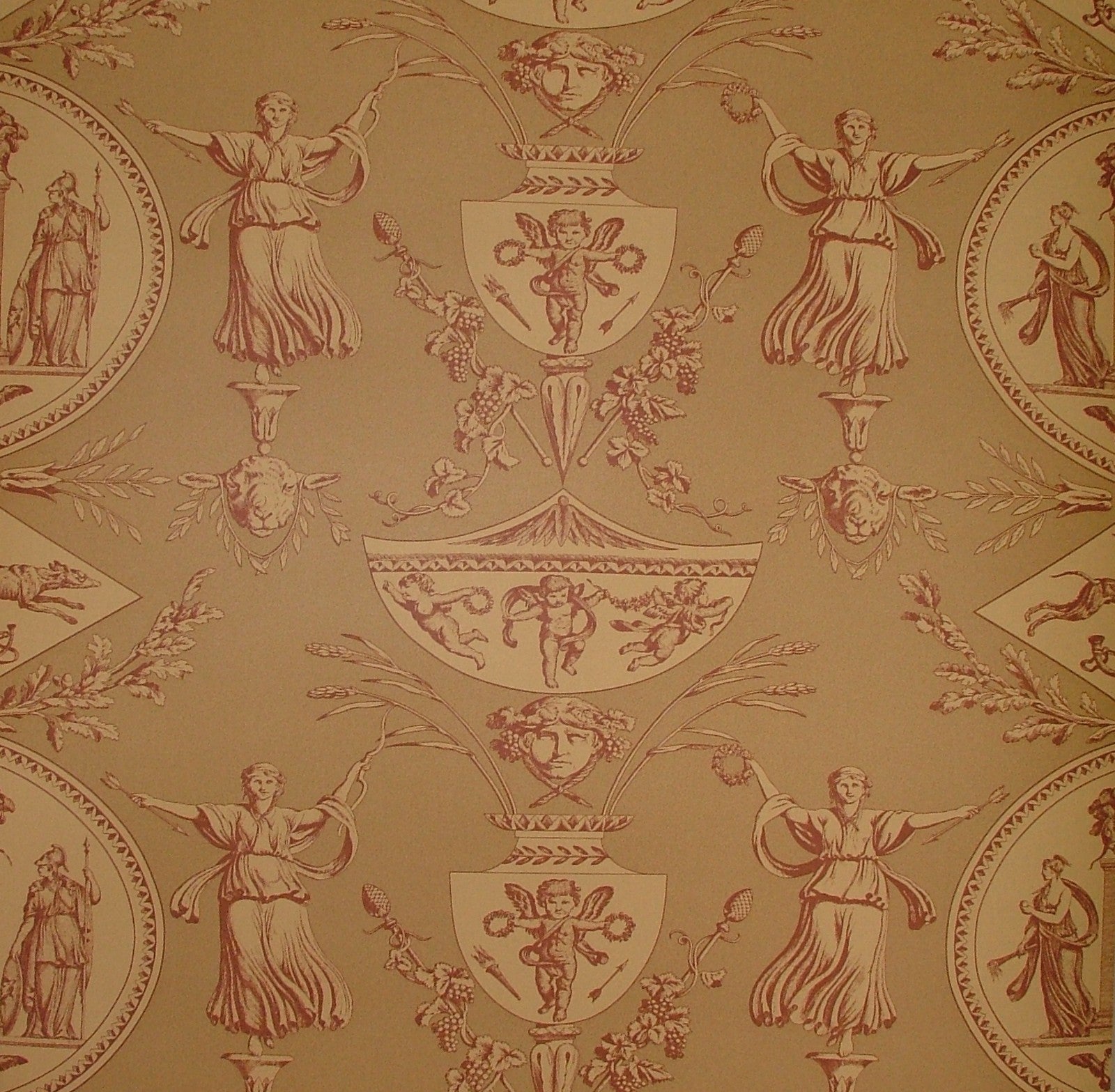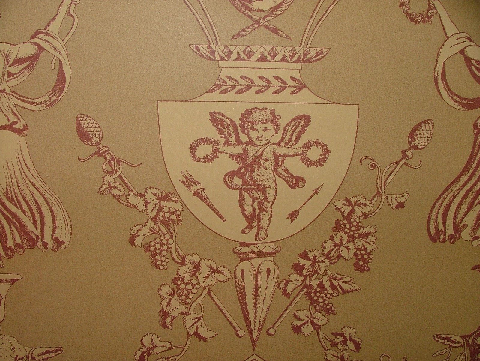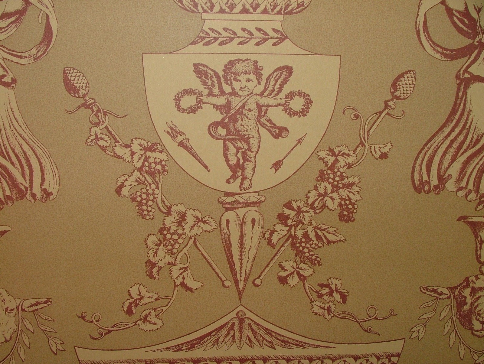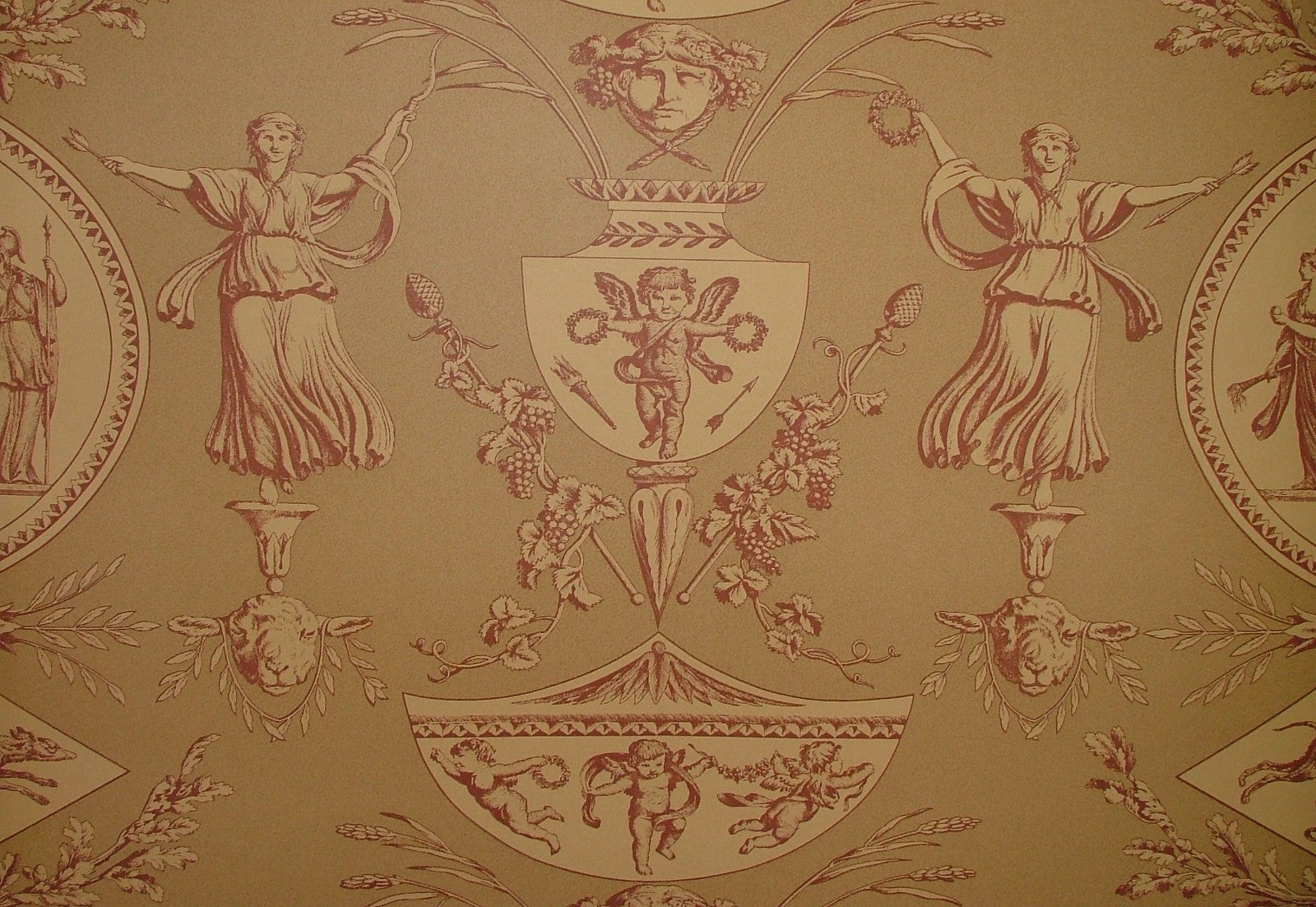 Vintage Aphrodite Toile Wallpaper Marvic Textiles Red - Sold BY THE ROLL
