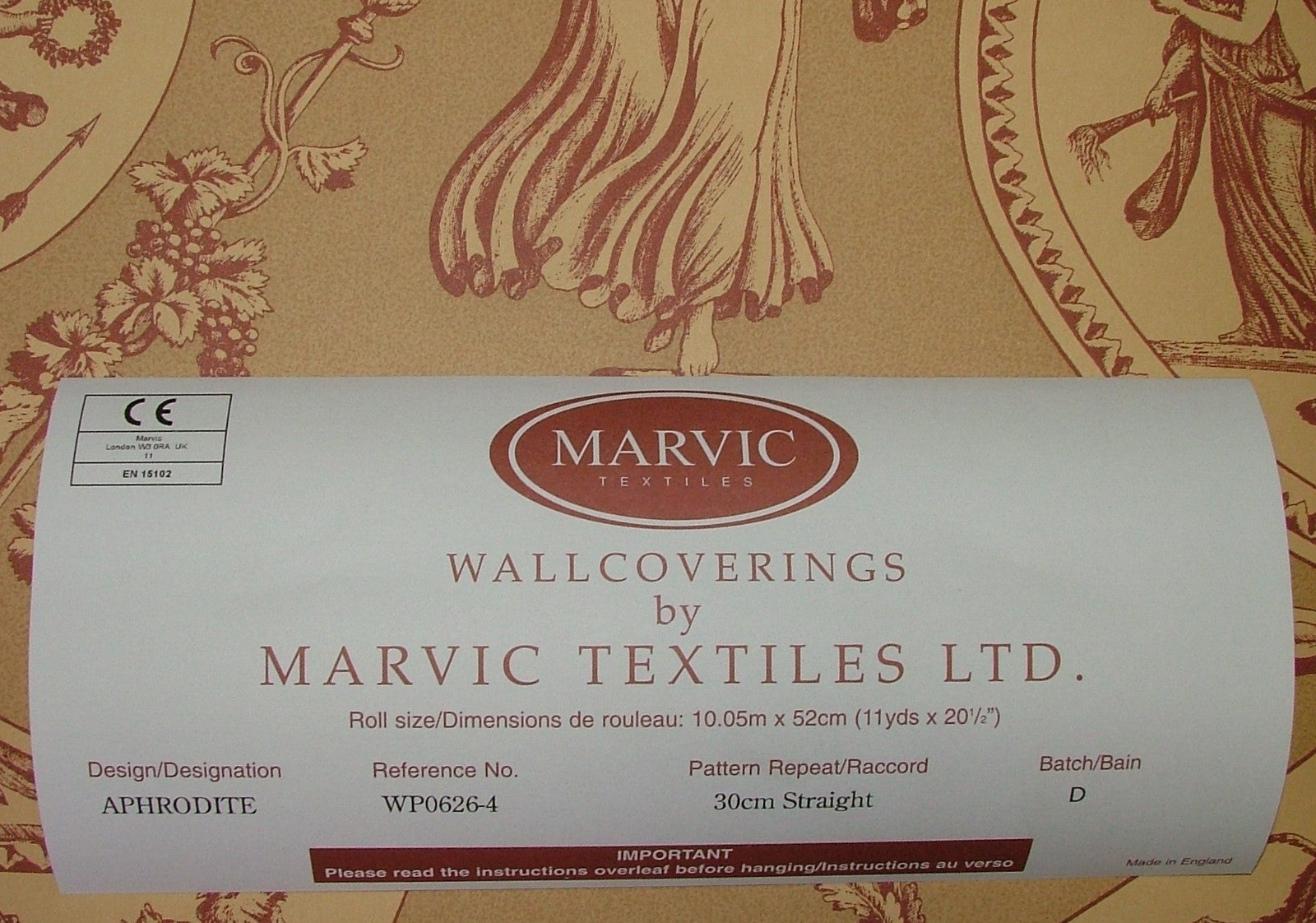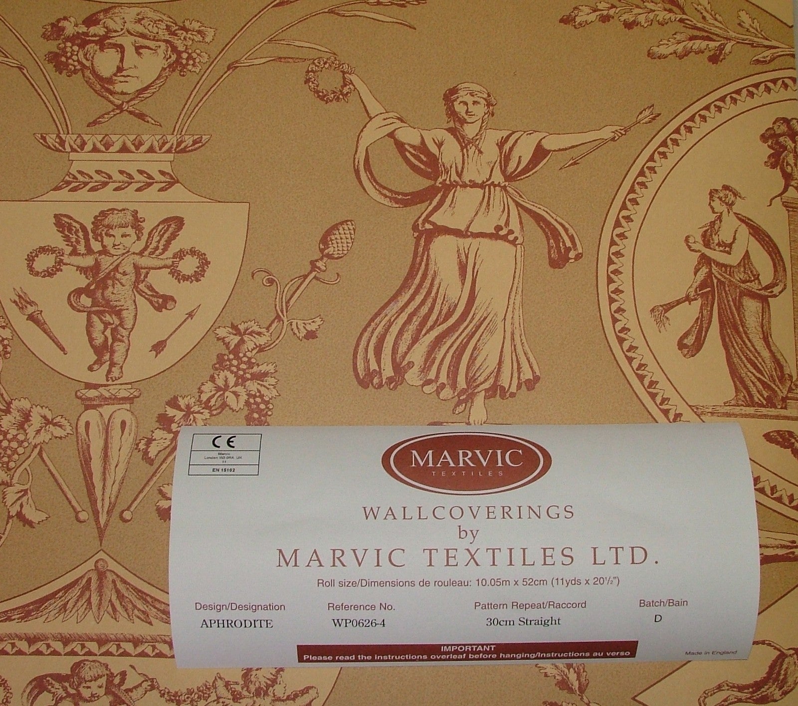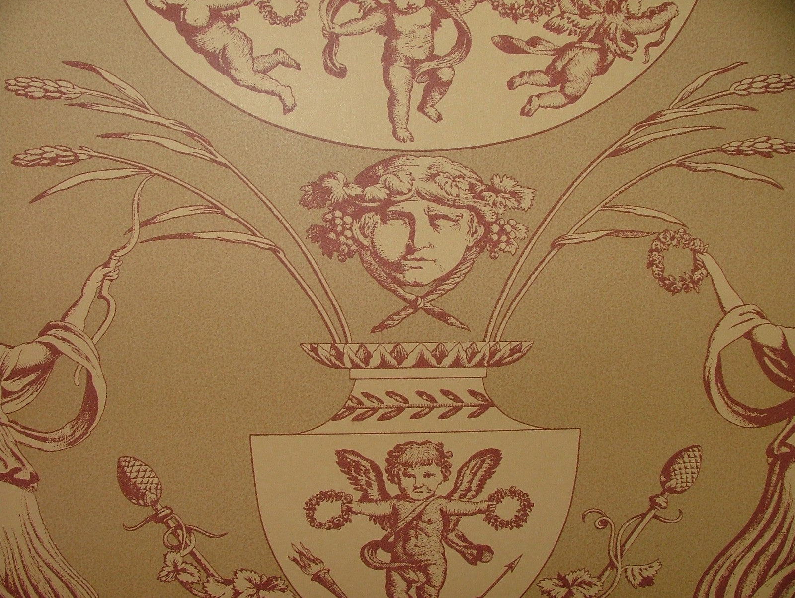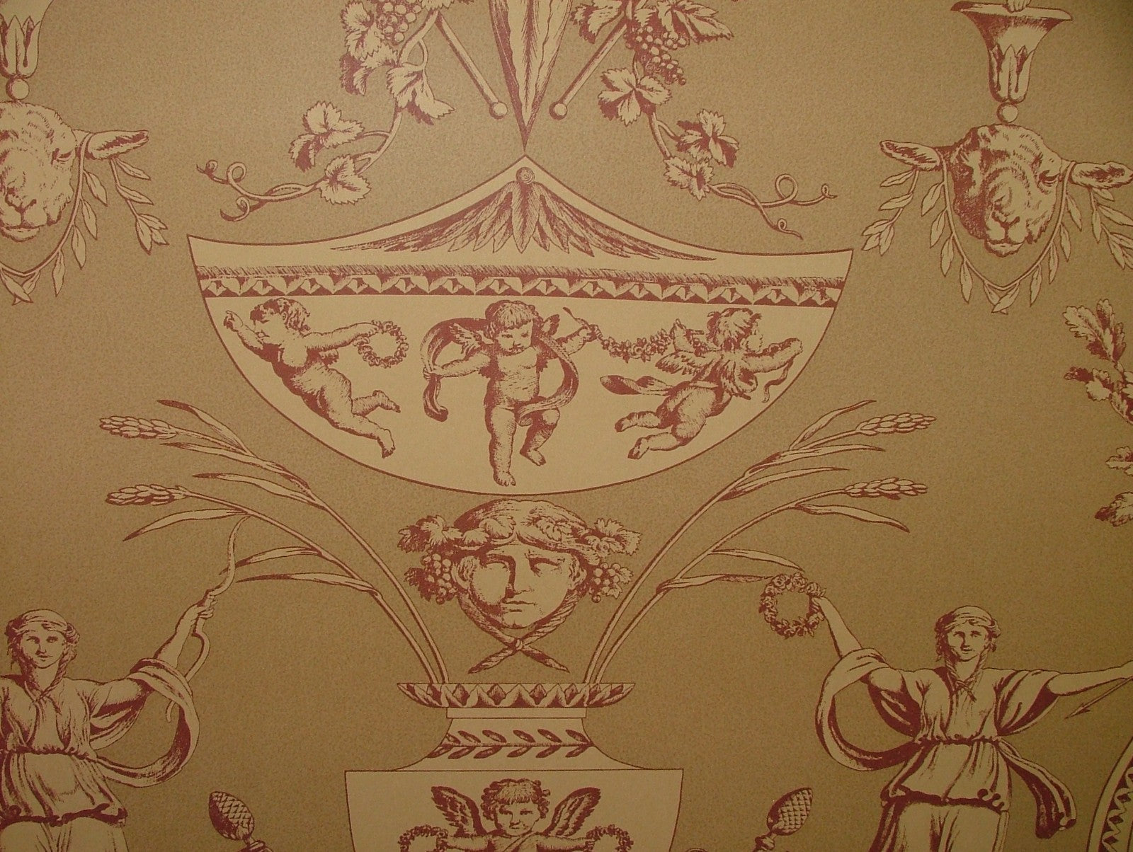 Vintage Aphrodite Toile Wallpaper Marvic Textiles Red - Sold BY THE ROLL